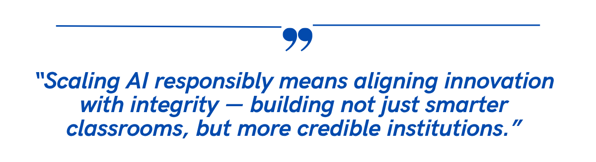 The real turning point in higher education isn’t whether AI belongs in the classroom — that debate is already over. The challenge now is scaling responsibly, with faculty development, governance, and infrastructure moving in lockstep. Betting on institutional AI fluency means investing in people as much as platforms — because the future of higher education will be defined not by the tools we adopt, but by the capacity, confidence, and credibility we build around them.